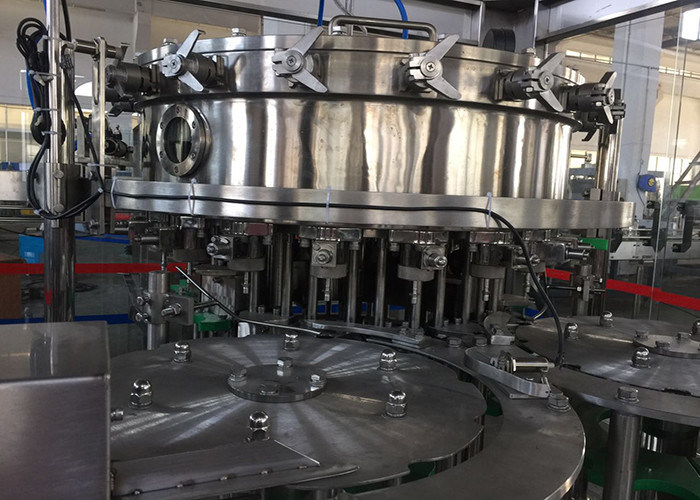 いっぱい入ったボトルは車輪を突く把握首の転移によるおおう部分に移ります。停止ねじで締まるナイフはびんの首を、保ちますびんの直立した回転を握ります。ねじおおう頭部は回転および自転で保ちます。ガラス ビンの炭酸塩化された飲み物の充填機はことができま、つかまえることを含む全おおうコースを終える、カムの行為によって排出するねじで締まること押します。いっぱい入ったボトルは車輪を突くことによる次のプロセスへのびんの出口のコンベヤーに移ります。全機械は窓と封じられた窓の底の1台の機械に付き2台のピークに、帰りの空気出口があるより高いです、封じられた窓の高さ囲まれています
